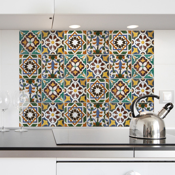 A 47 × 65 cm-es öntapadós csempefólia praktikus és gyors megoldás a konyhapult mögötti felület megújítására.