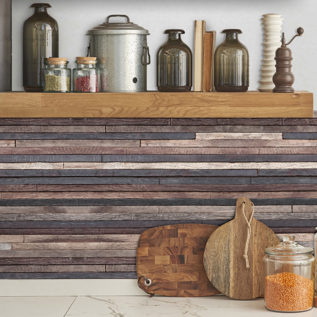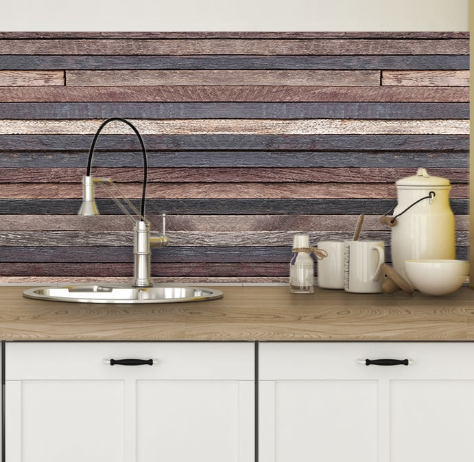 Konyhai csempefólia, hőálló csempematrica, barna deszkás 45 X 180 CM